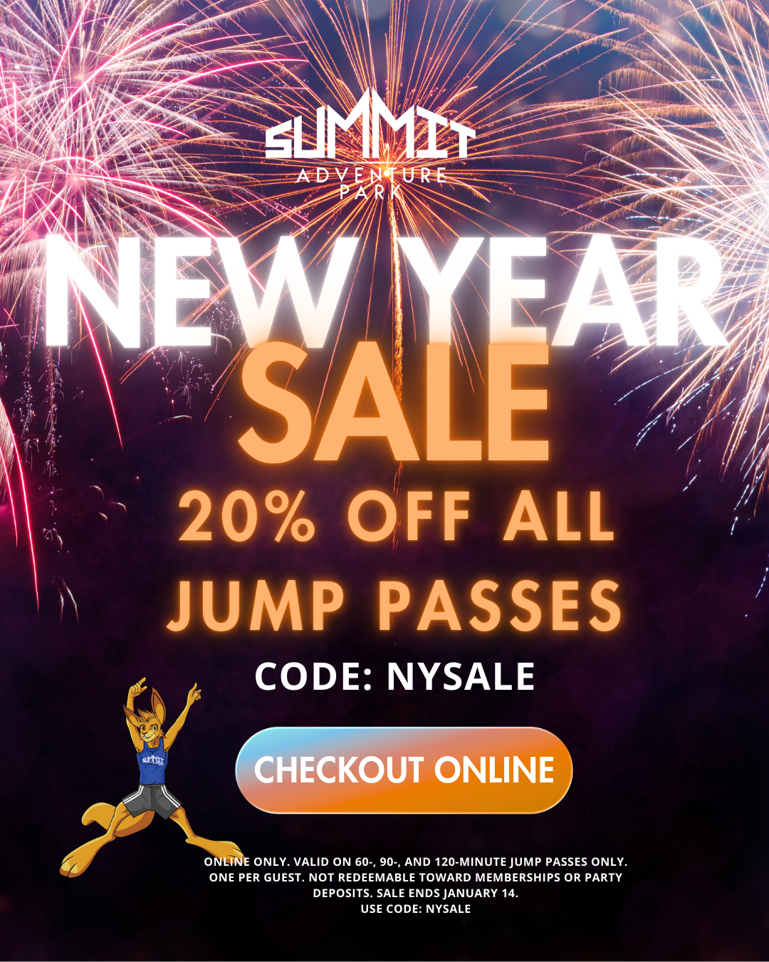 SUMMIT Adventure park is offering fun spaces for your groups and events. We can accommodate all ages and group sizes. Have fun on 27,000 square feet of indoor jumping space!